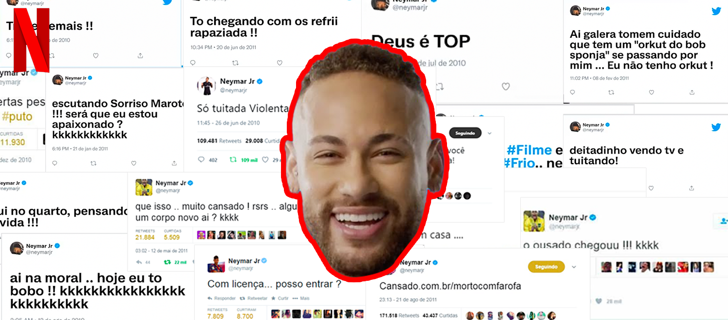 O Neymar é o autor de alguns dos tweets mais mitológicos da internet, e nós PRECISAVAMOS fazer ele relembrar essas pequenas pílulas de felicidade que ele já soltou para promover a série